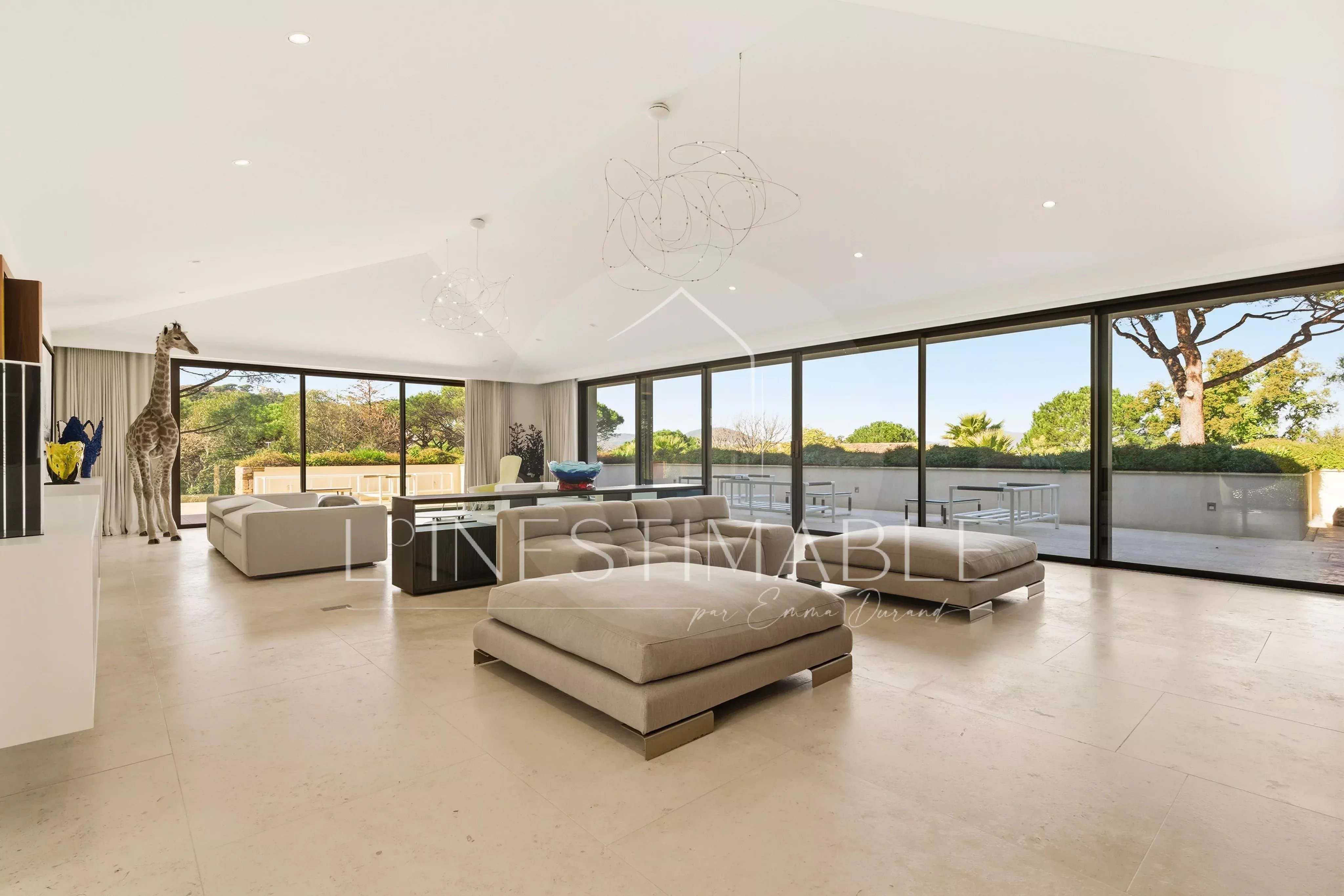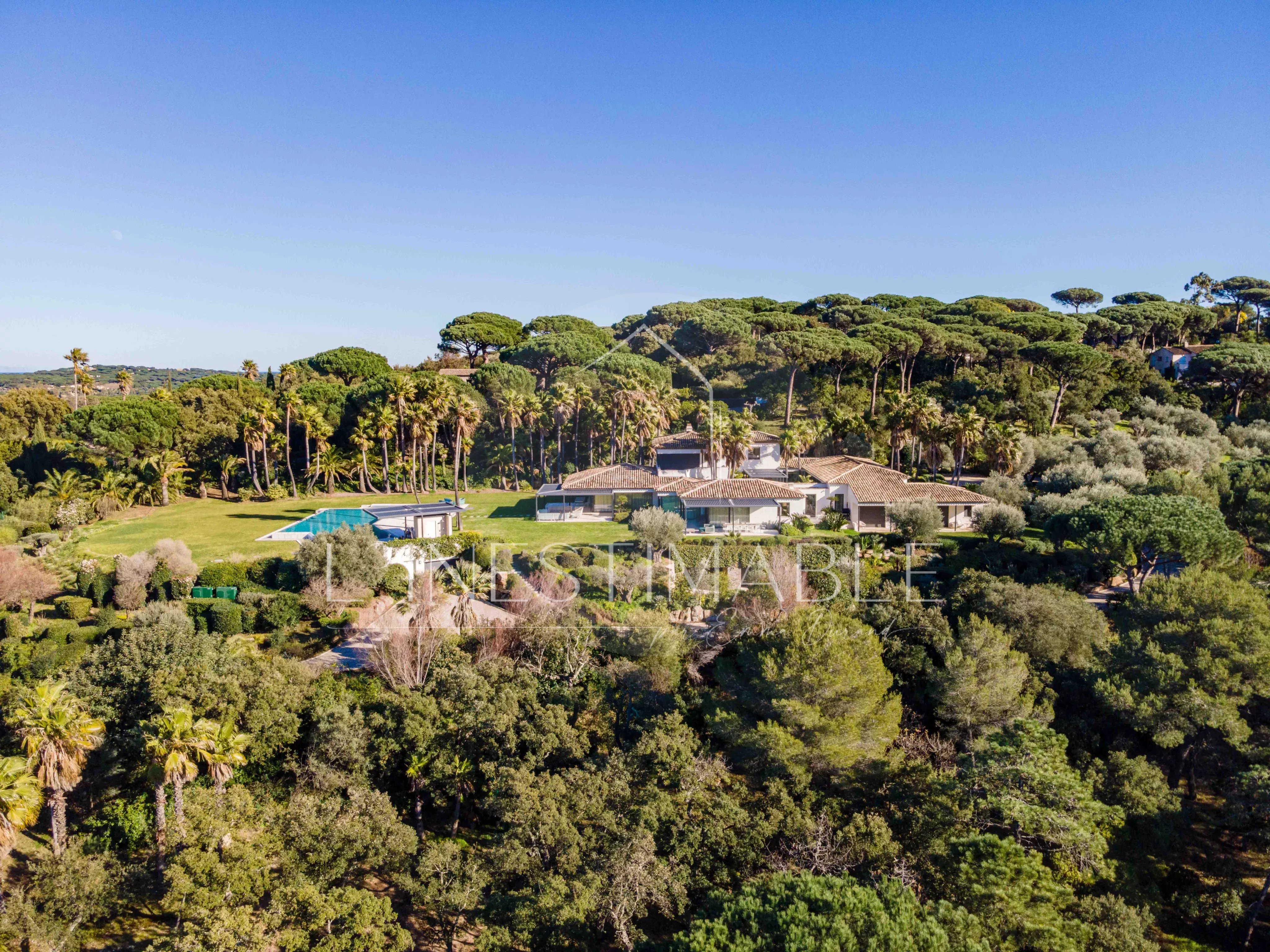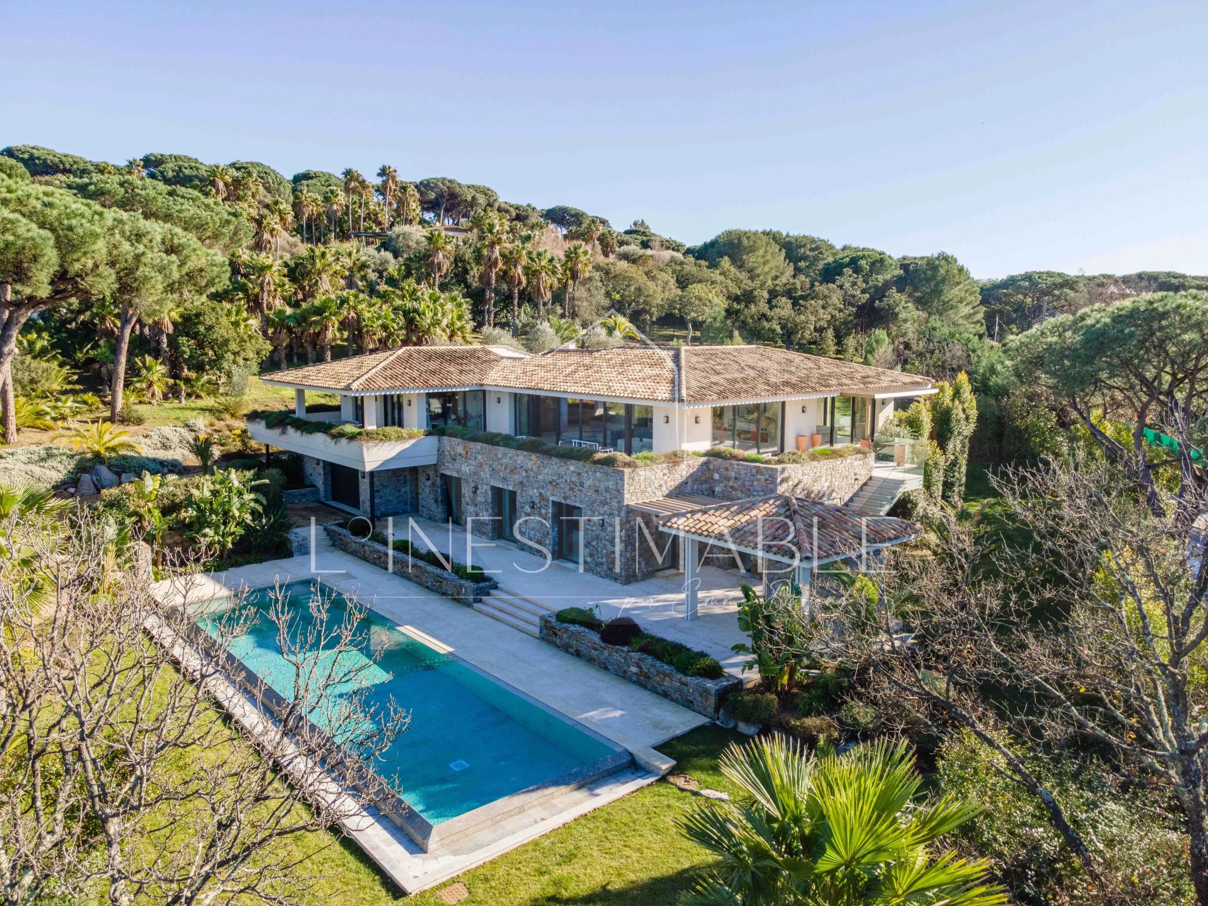 Quartier Pinet, sur les hauteurs de Saint Tropez, L'Inestimable vous propose de découvrir cette somptueuse villa neuve de plus de 350m2 sur 3 niveaux .