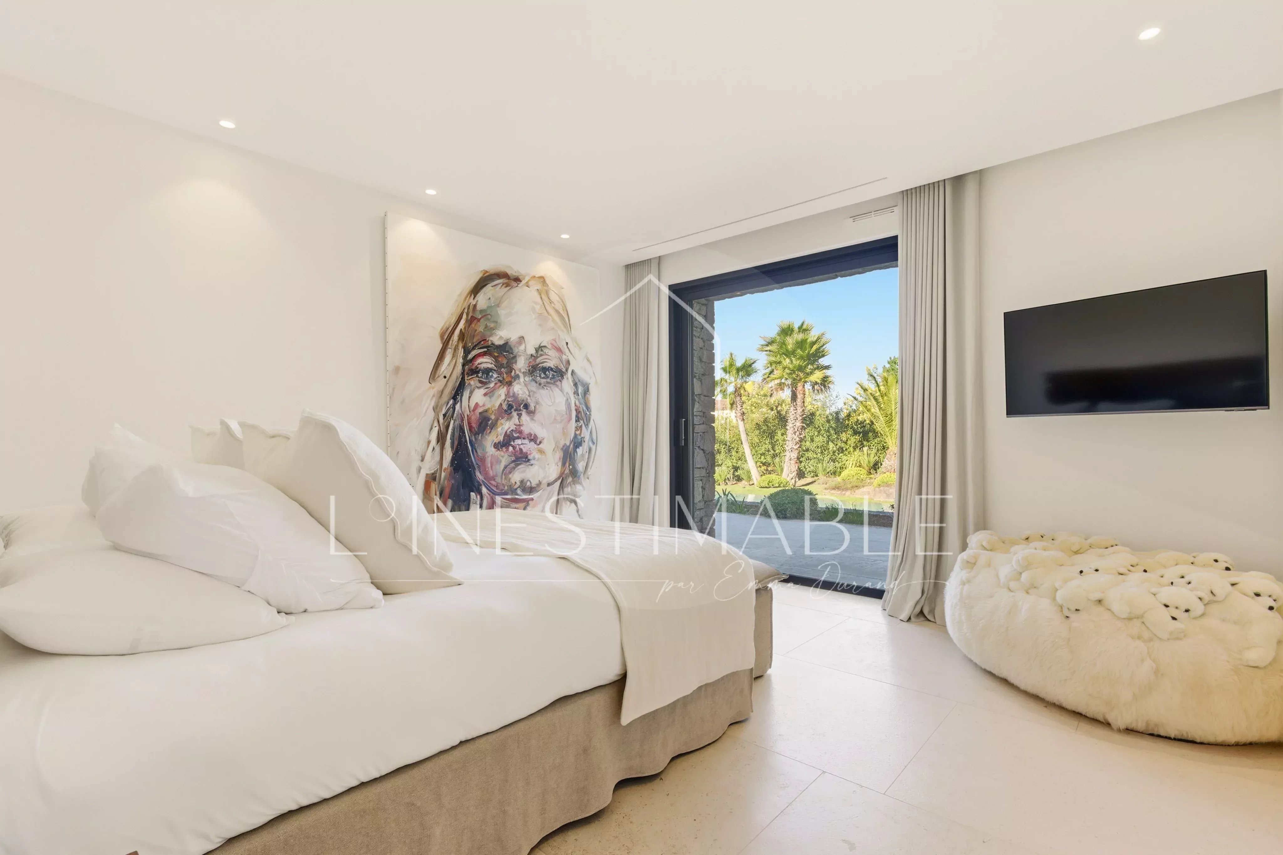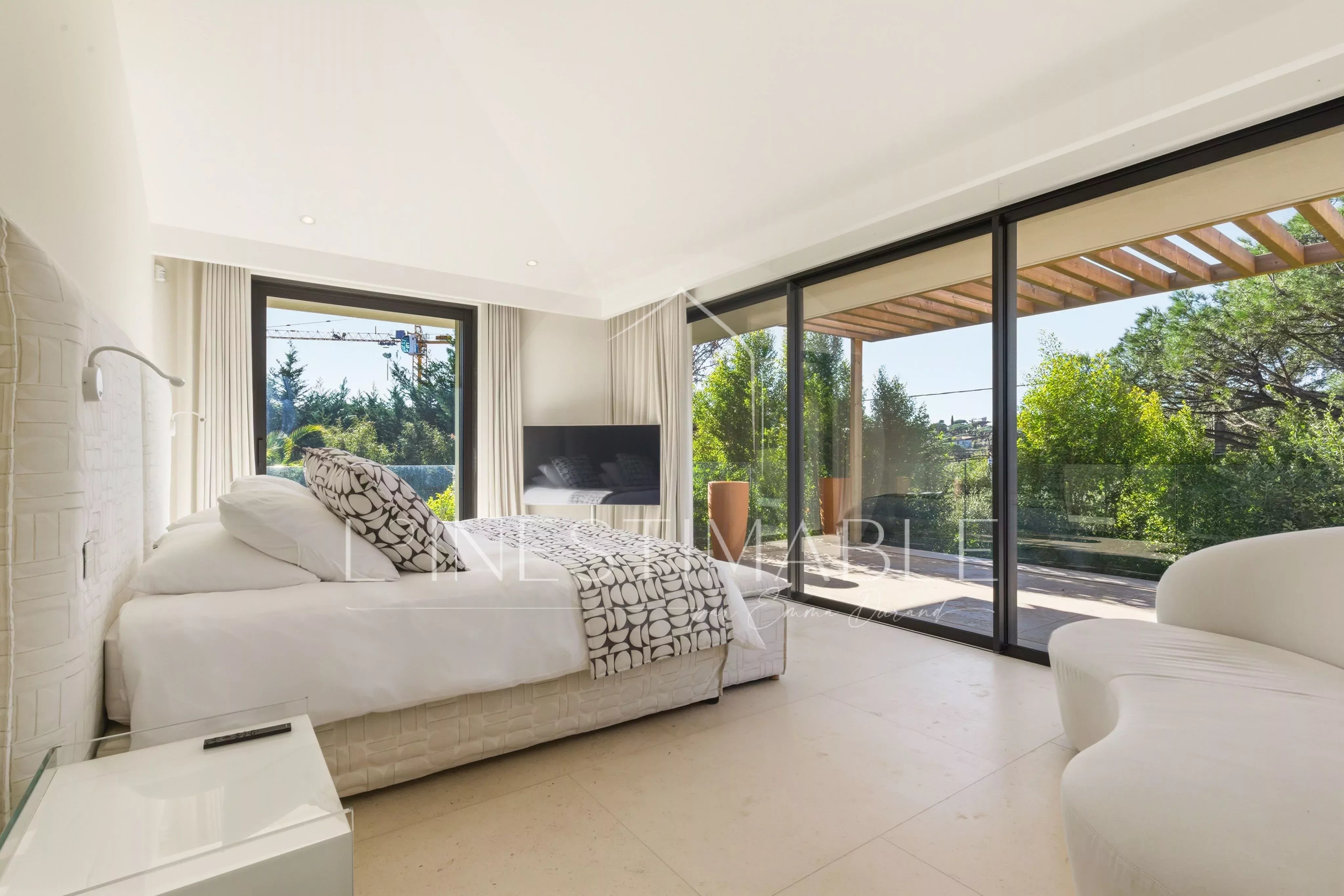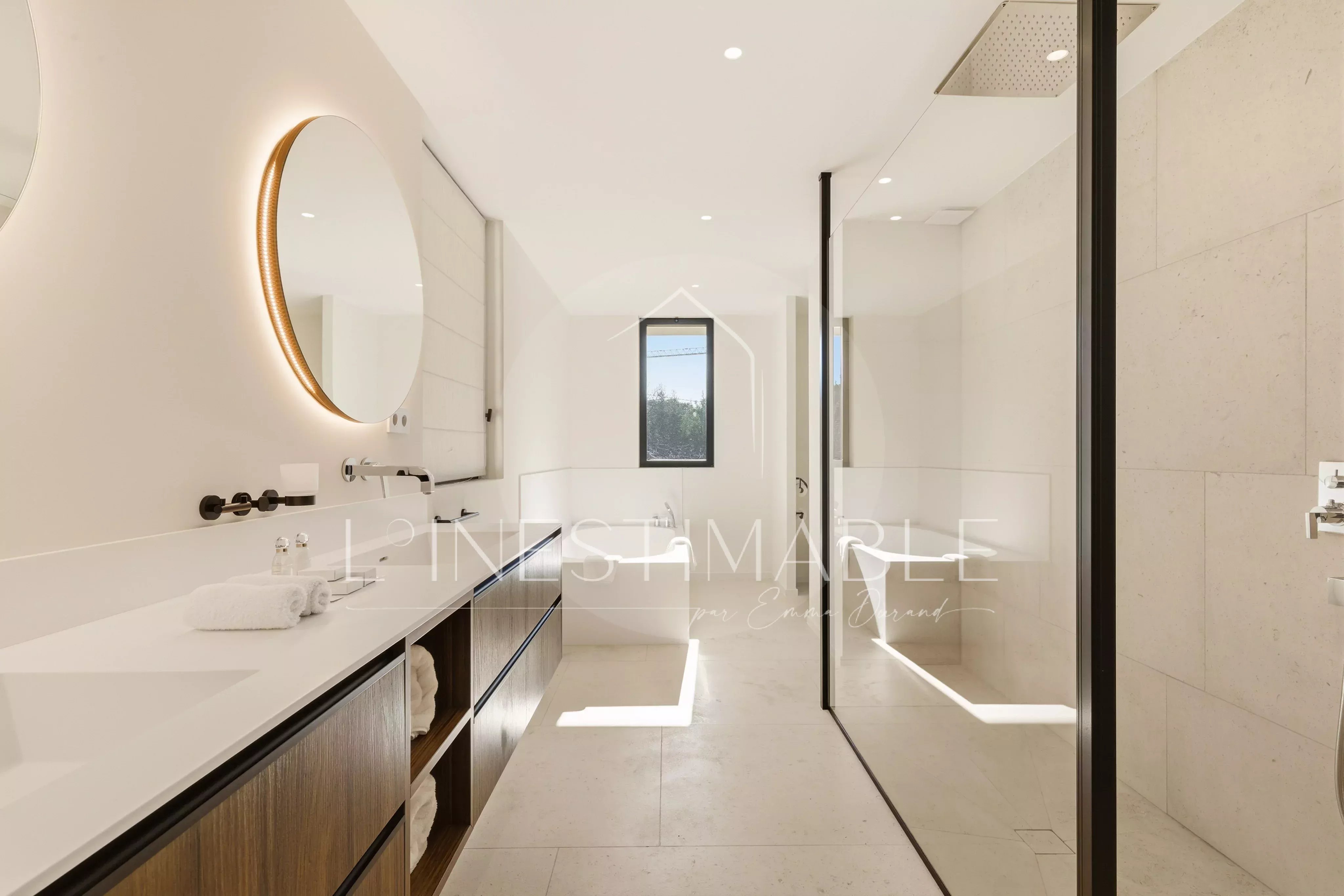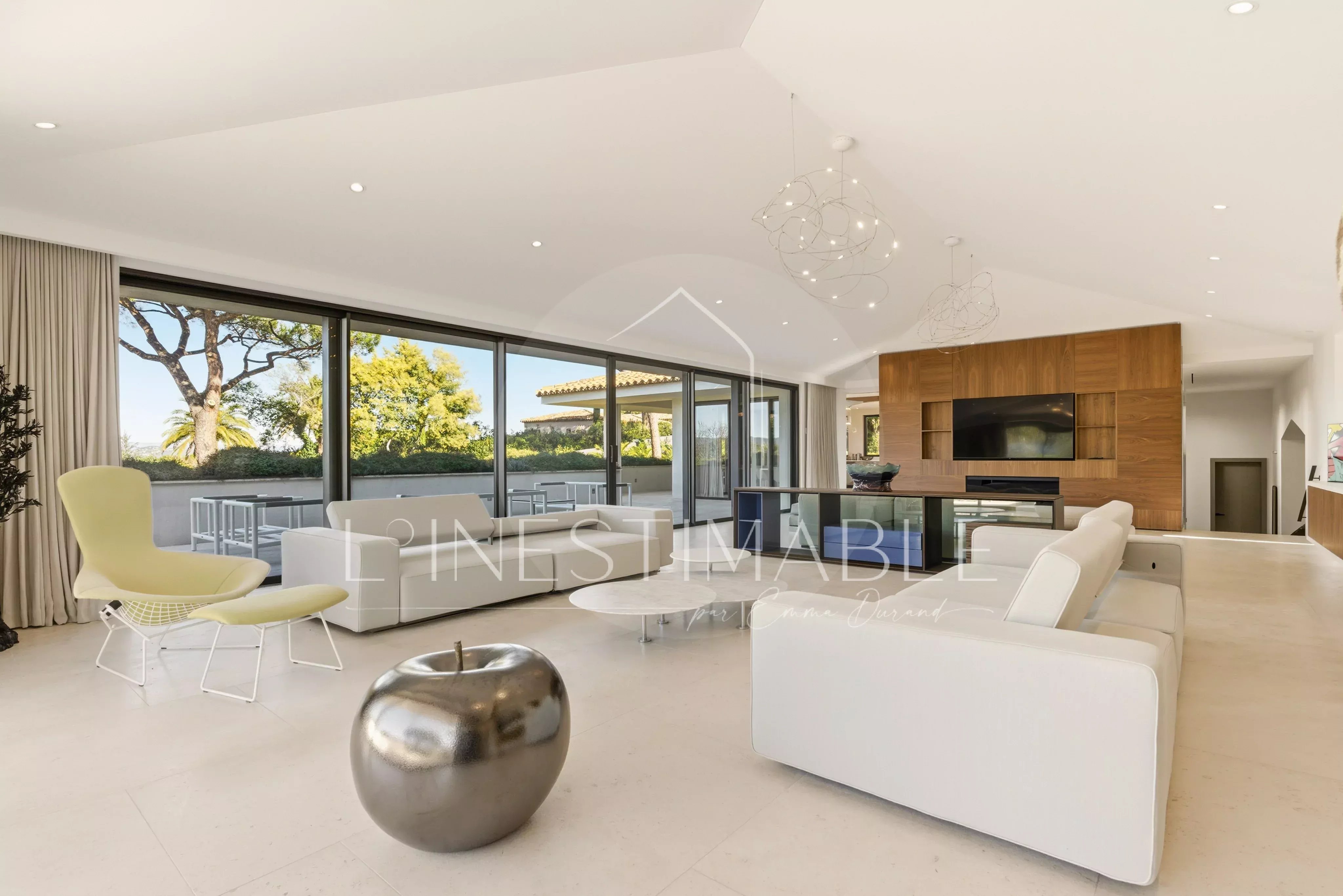 Quartier Pinet, sur les hauteurs de Saint Tropez, L'Inestimable vous propose de découvrir cette somptueuse villa neuve de plus de 350m2 sur 3 niveaux .
