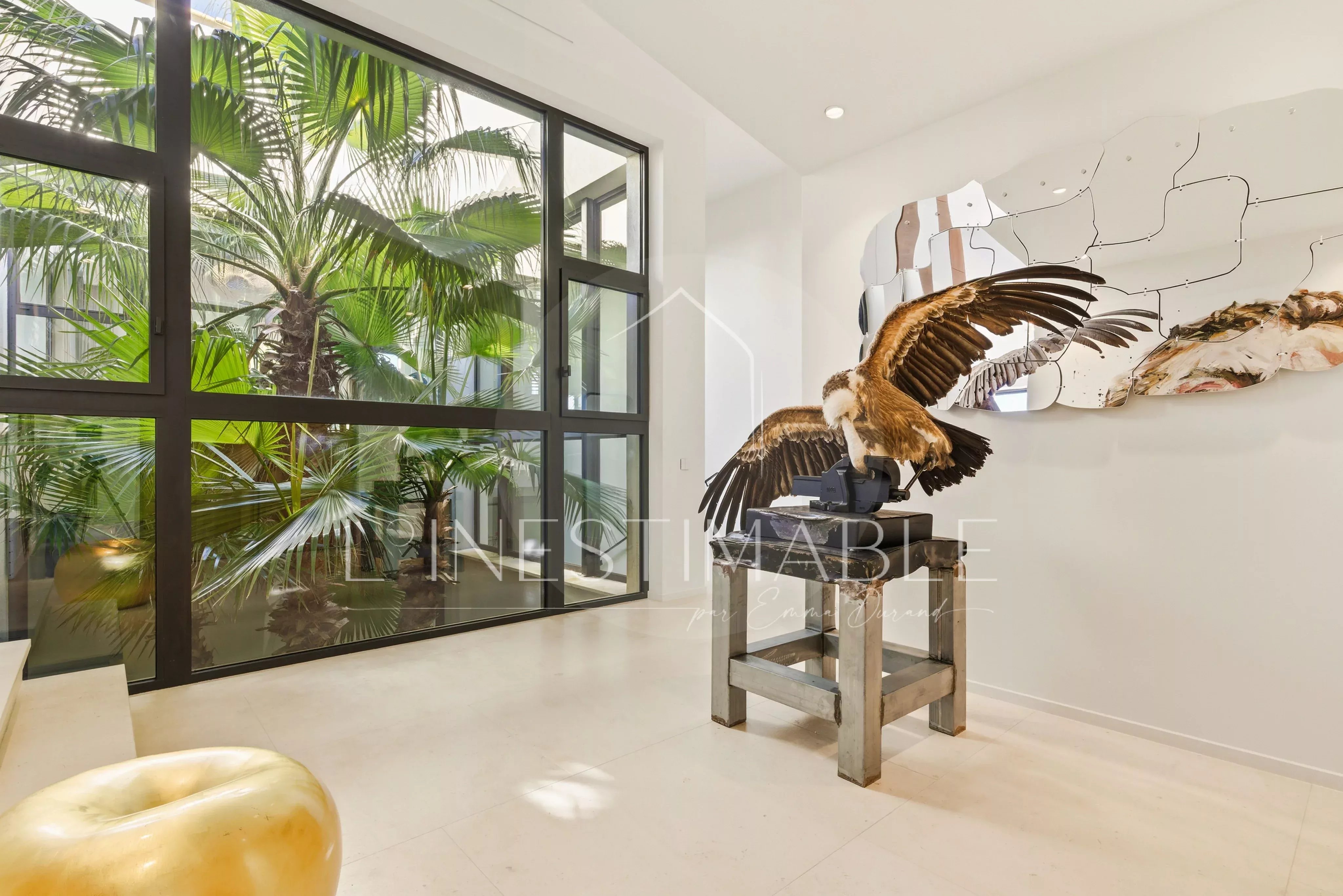 Vous apprécierez la salle de sport et la chambre de service en sous-sol, l'ascenseur qui relie les étages, le grand garage ainsi que le parc arboré de 5000m2.